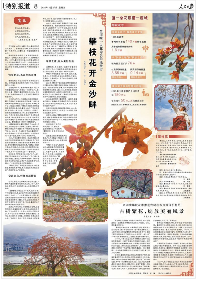 “火红的攀枝花,陪伴着我们探索资源型城市的转型发展之路。”攀枝花市文化广播电视和旅游局产业科科长马文超说,通过做好“康养+”融合文章,推广“暖暖花城·慢慢生活”等文旅品牌,康养产业建圈强链取得良好成效。攀枝花连续6年跻身中国康养可持续发展20强市,每年吸引50万人次来康养过冬,2025年文旅康养产业增加值达180亿元。