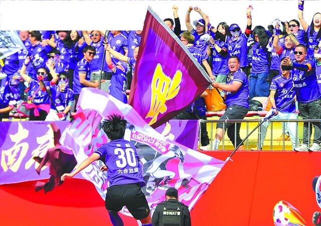 李毅进球后与球迷一起欢呼庆祝。南充市融媒体中心记者乐校臣摄