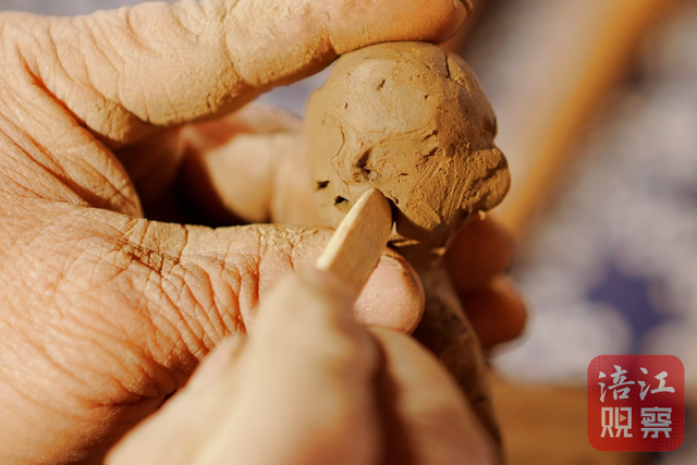 “做胡子时,用工具从宽处平拖过去,表面就光滑平顺;如果做转折面,就把工具立起来棱着用过去,这样就能做出纹路和动态,有一种飘起来的感觉。”他一边说,一边示范,竹刀在泥面上划出流畅的弧线,一条“胡子”便在指尖成形。这看似简单的动作背后,连接的是一段跨越百年的文化血脉。