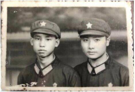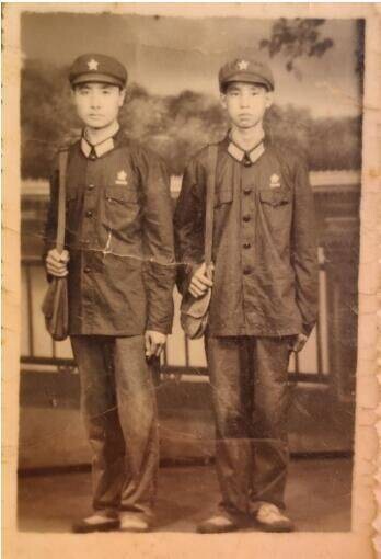 唐快生(左)和战友唐纯信的合照。受访者供图