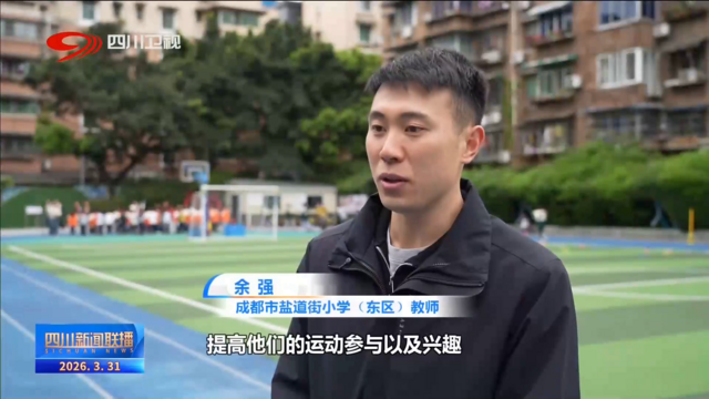 成都市盐道街小学(东区)教师 余强:提高他们的运动参与以及兴趣,同时增强我们孩子的协调性和身体素质,让学生去做自己、展示自己。