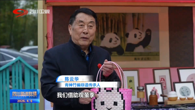 青神竹编非遗传承人 陈云华:我们借助观萤季,把我们的竹编也做成了一些的艺术(品),让我们的竹编产品火起来。