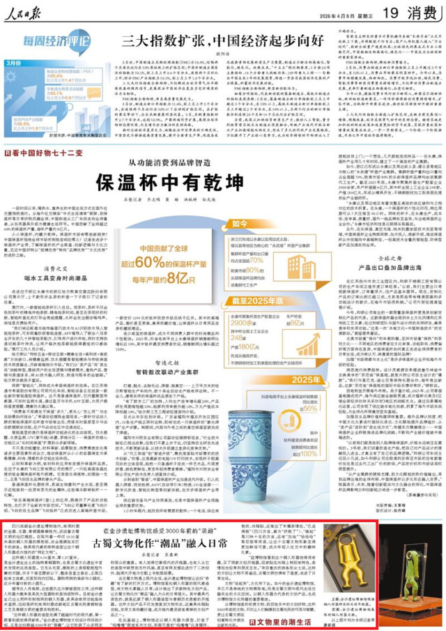 从博物馆里的珍贵文物,到百姓手中的文创好物,这件3000年前的文物,不仅让人们触摸到古蜀先民的巧思与智慧,更让古蜀文明在创意转化中焕发出新的光彩。