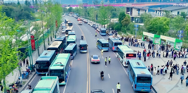 为保护生态,游客乘坐摆渡车前往观萤地。