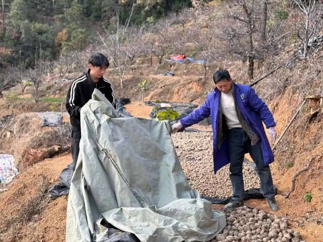 海拔约2000米的起查喇村,林木为魔芋提供天然遮荫,营造出“昼26℃、夜16℃”的黄金生长环境;魔芋生长过程中自然松土、杀菌、杀虫的特性,又反哺果树生长,形成“护林、益林、促林增收”的生态循环。