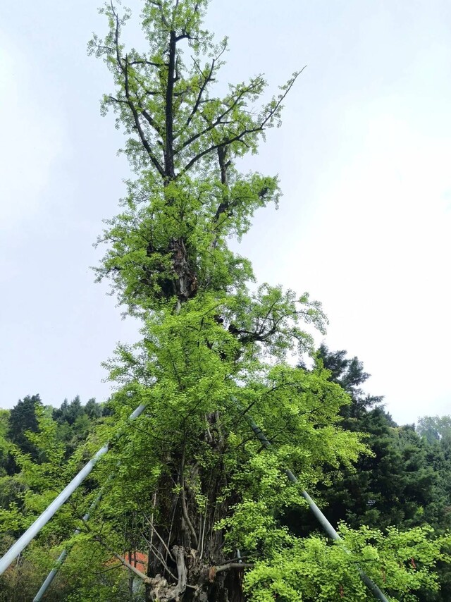 这株千年银杏,当地无人不知。据考证,它在成都东部新区的丹景山上静静矗立了1700余年,曾经历雷劈、斧砍、火烧,伤痕累累,虽经各级部门多次救治,但仍需持续复壮。