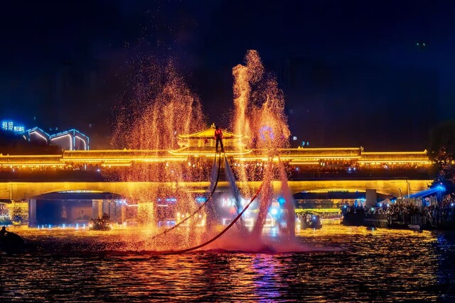 场景上新。今年春节假期,紫禁城的红墙被“搬”至峨眉山脚下,呆萌的机器狗与古装NPC在乐山大佛广场“同台飙舞”,文创与非遗的叠加,让游客流连沉醉。在苏稽古镇,沉浸式夜游演艺“夜游苏稽 奇妙有你”常态化推出,廊桥融入河畔,成为“流动的舞台”,景中有剧、剧在景中。