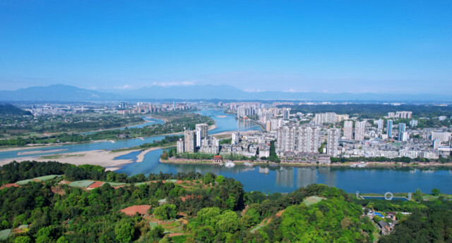 俯瞰三江汇流处的乐山城。乐山市委宣传部供图