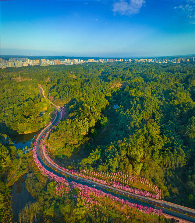 乐山城市“绿肺”——绿心公园迎着晨光释放春日气息。乐山绿心公园管理处供图
