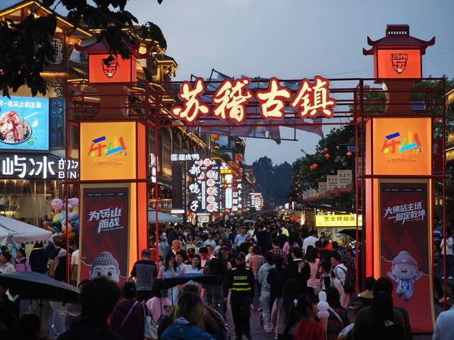 消费出新。刚刚启动的“春满嘉州”消费季上,500万元文旅消费券通过线上线下同步发放。在“乐山味道”川菜产业园体验店内,游客可以用消费券抵扣购买甜皮鸭伴手礼;在张公桥美食街,深夜的“后备箱集市”里,年轻人支起摊位,卖起了特调咖啡和手作文创;岷江之上,“夜游三江”升级版增加水上实景演艺,灯光与音乐中,游船缓缓穿行;打造“美食之都”,让舌尖上的麻辣鲜香满足更多游客的味蕾。