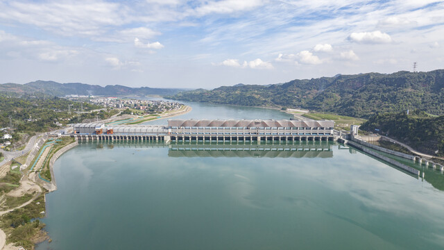刚竣工的岷江龙溪口航电枢纽。乐山市交通运输局供图