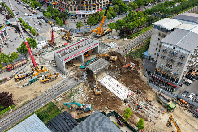 旧桥拆掉、新桥顶进、铁路恢复——所有工序在24小时内顺利完成。14日早上9点过,火车顺利开上新的铁路桥。据成铁工管公司成都项目部专工李冰介绍,此次改造将通道拓宽为双向四车道,建成后将彻底破解该路段通行难题,有效疏解区域交通压力,畅通市区与生态景区的联动通道。