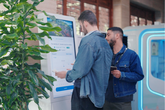 外籍游客在乐山大佛景区自助购票(乐山大佛景区 供图)