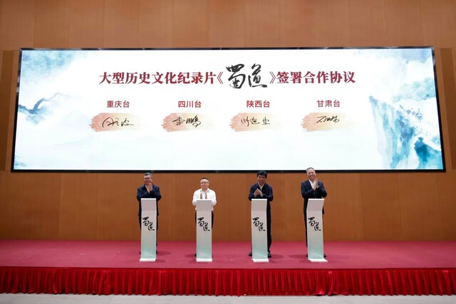 4月16日,由四川广播电视台牵头,联合陕西广电融媒体集团(台)、甘肃省广播电视总台、重庆广播电视集团(总台)共同出品的大型历史文化纪录片《蜀道》在成都开机。中共四川省委宣传部副部长,省广电局党组书记、局长李晓骏在致辞时表示,四川作为项目发起方,将全力推进项目拍摄制作,期待主创团队以匠心打磨精品,把蜀道的厚重底蕴与时代价值呈现给全国观众。开机仪式上,四川、陕西、甘肃、重庆四省市台现场签署项目联合出品制作合作协议,并共拓“蜀道长卷”,为纪录片拍摄按下启动键。