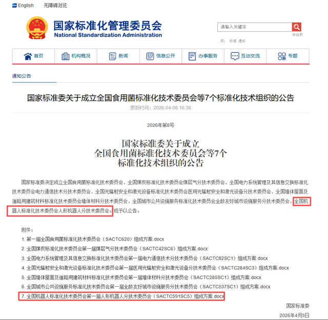 据介绍,人形机器人分技术委员会编号为SAC/TC591/SC5,主要负责我国人形机器人基础共性、安全与伦理、部组件、整机、应用与集成等全链条标准化工作,汇聚了湖南大学、哈尔滨工业大学、清华大学、华为、优必选等顶尖高校、科研院所及行业领军企业,堪称人形机器人领域的“国家队”。