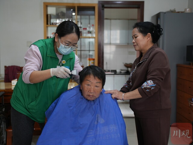 当天,记者跟随张雪莲前往3户家庭,发现除了功能训练外,理发也是老人“点单”频率最高的服务之一。“出去一趟很麻烦,自从小张上门后,我们都是在家里剪的。”刘叔叔的老伴患有帕金森,被评估为重度一级。张雪莲剪得多了,技艺日渐娴熟,“家里的老人小孩,头发也是我剪的。”张雪莲笑着说。