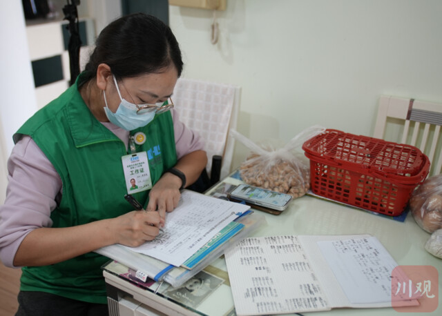 “差不多20斤,装着各种服务工具。”每天清晨,43岁的她背着这只包,骑上电瓶车,穿行在成都市新都区的大街小巷。