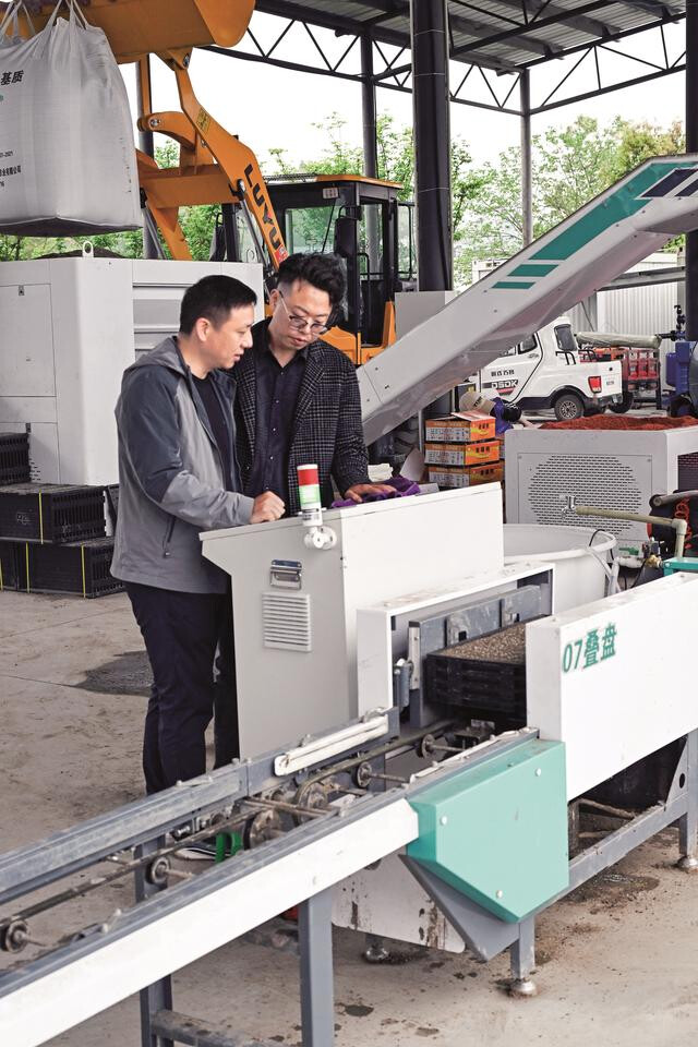 王丹:公司去年10月购置的,今年3月开始投运。这台设备是全程自动化操作,分盘、覆土、播种、叠盘……一道道工序无缝衔接,我们只需将秧盘、种子放入指定进料口,设备便会精准高效地完成整个育秧环节,不光速度快,育出的秧苗也很规整。