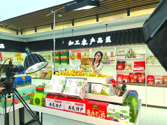 南充市好充食科技有限公司打造的“好充实”直播间,将品牌理念与南充特色农产品深度绑定,精准对接主播与本土货源,主打生鲜与特色特产。该公司电商运营总监林豪说:“自入驻基地以来,我们专注挖掘南充本土特色,既打响了自有品牌,也让乡土产品走进千家万户,目前销售额已达8000万元。”