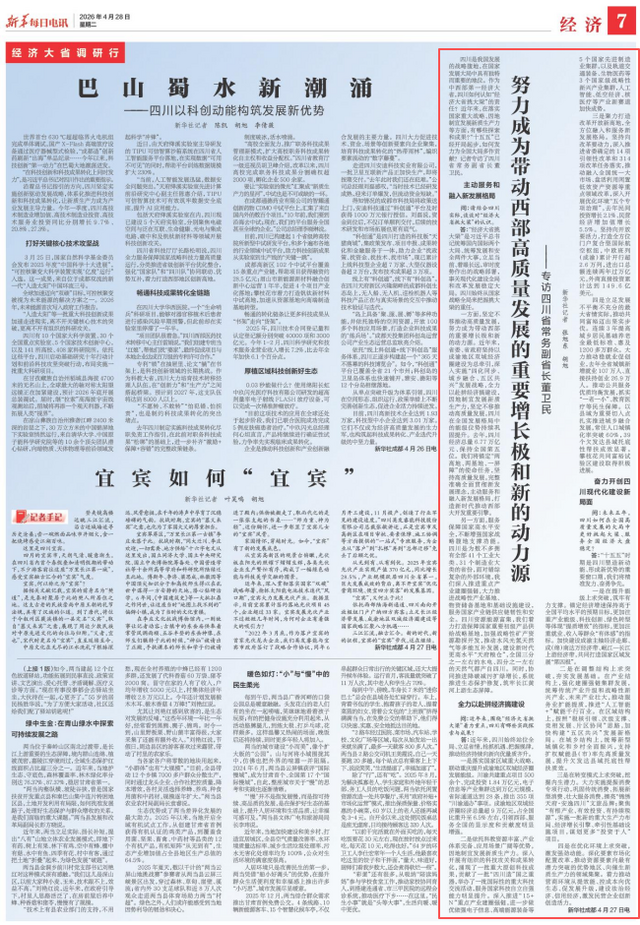 问:近年来,围绕“经济大省挑大梁”着力重点,四川有哪些实践探索与成果?