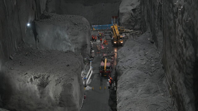 两河口抽水蓄能电站主厂房建设现场。