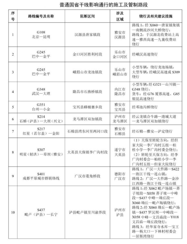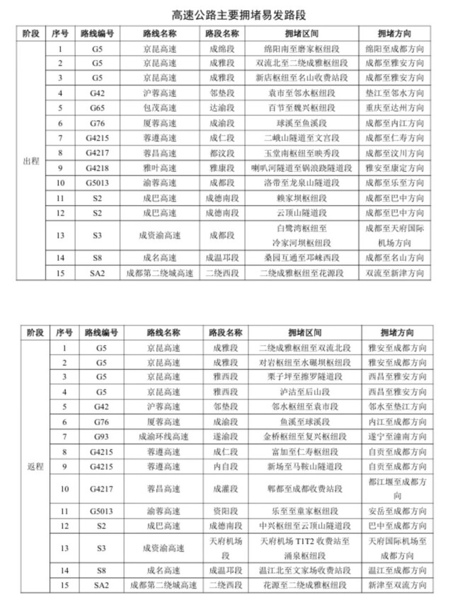 2026年4月30日12时至21时,5月1日8时至21时,5月5日8时至21时,四川境内高速公路对除鲜活农产品运输车以外的三轴(含)以上货运车辆采取临时交通管制、错峰通行的措施。